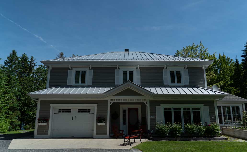 Un très beau projet au bord du lac Drolet. La maison se niche très bien dans la forêt environnante et dans le paysage.